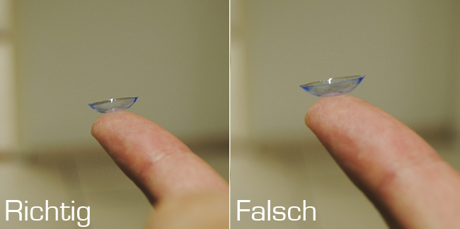Es muss zunächst die Flüssigkeit in der Kontaktlinse verteilt werden. Dazu muss die Kontaktlinse auf dem Zeigefinger der rechten Hand gehalten werden. Mit dem Mittelfinger wird das Unterlid nach unten gezogen. Dies erleichtert die Anpassung und das Auge wird nicht so stark gereizt. Auch der regelmäßige Besuch beim Arzt ist wichtig.